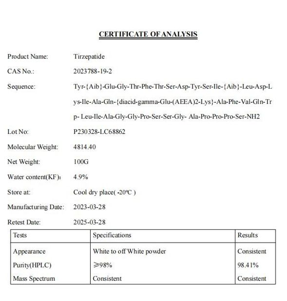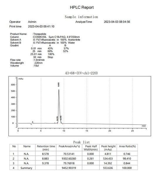 Πρότυπο:HPLC Αριθμός:004 Πεδίο εφαρμογής / Range:Tirzepatide HPLC |